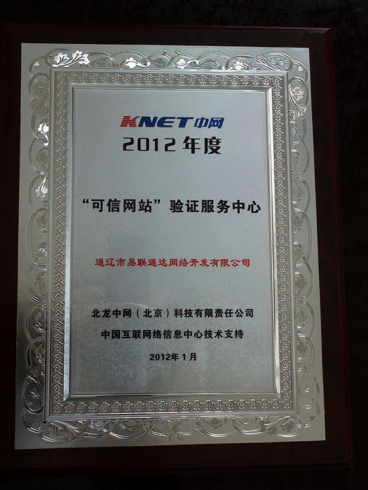 2012年通過中網(wǎng)可信網(wǎng)站認(rèn)證,正式成為通遼地區(qū)唯一一個(gè) 可以為通遼地區(qū)企業(yè)的網(wǎng)站提供可信網(wǎng)站驗(yàn)證服務(wù)的機(jī)構(gòu)。